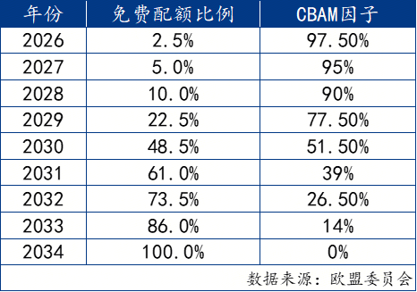 2、免费配额由CBAM因子、跨部门修正因子、该产品的CBAM基准值构成